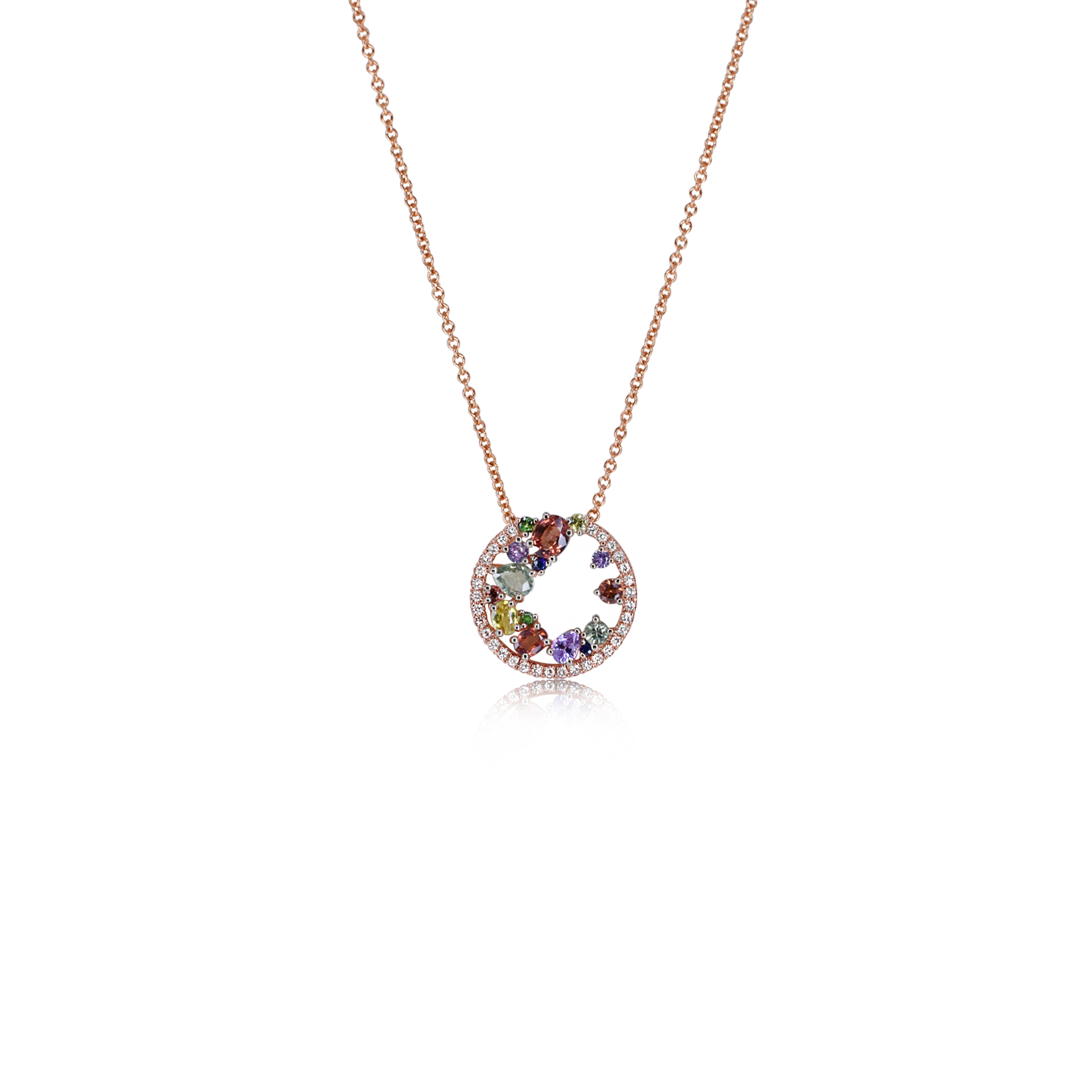 14ct Rose Gold Claw Set Multi Color Sapphire & Diamond Dolce Vita Pendant