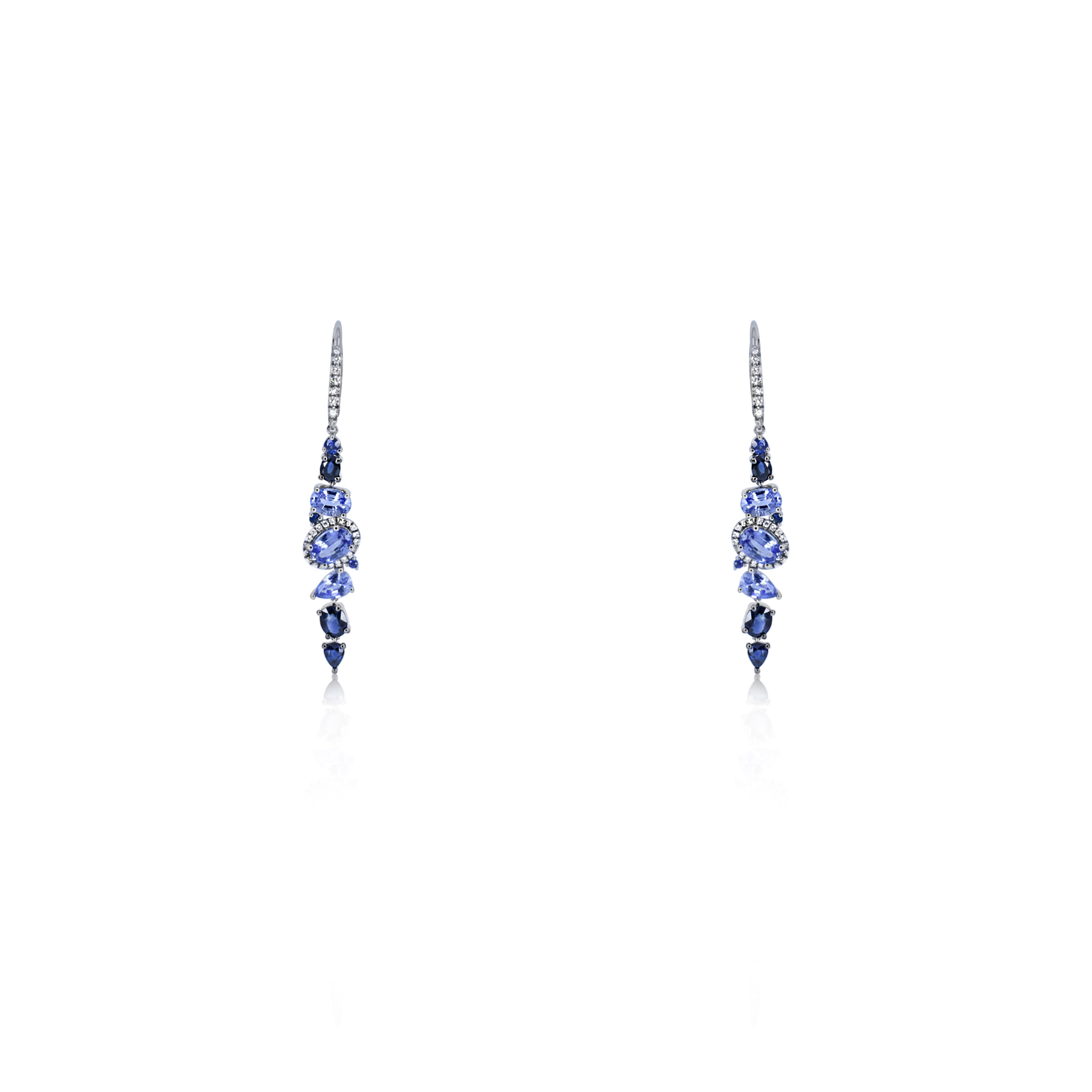 14ct White Gold Claw Set Blue Sappphire & Diamond Dolce Vita Drop Earrings