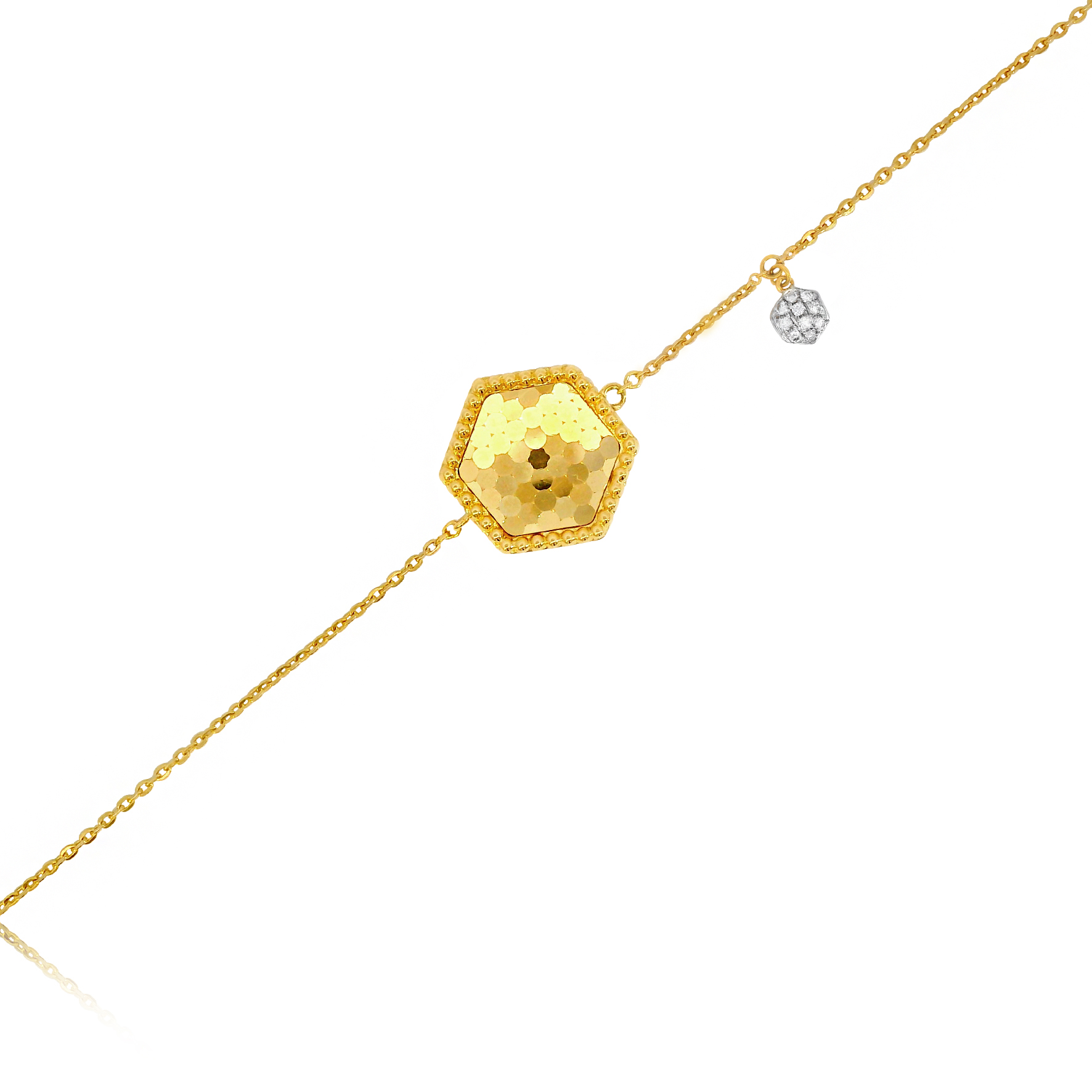14ct Yellow Gold Claw Set Diamond & Hexagon Honeycomb Bellagio Piccola Bracelet