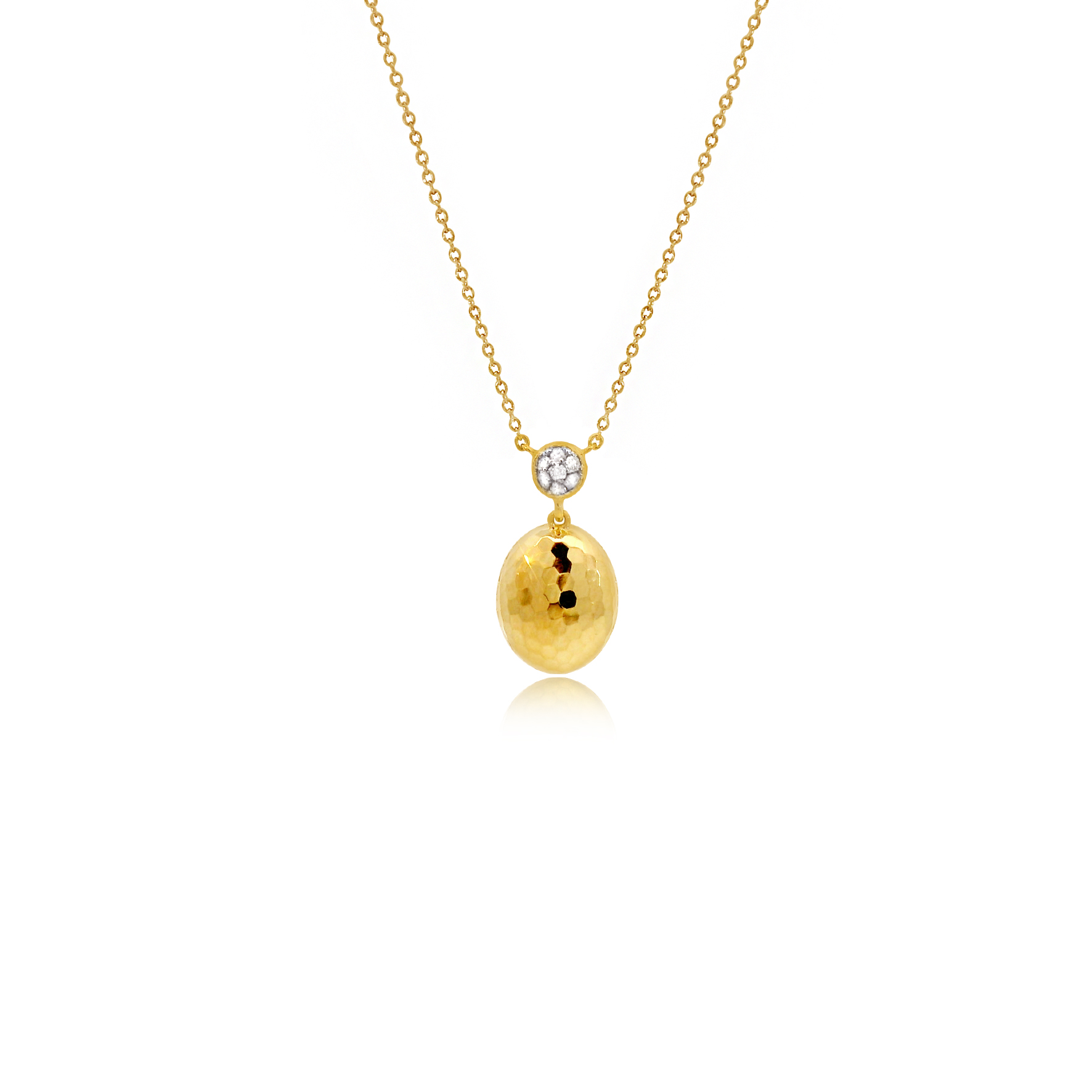 14ct Yellow Gold Claw Set Diamond & Oval Honeycomb Bellagio Piccola Pendant