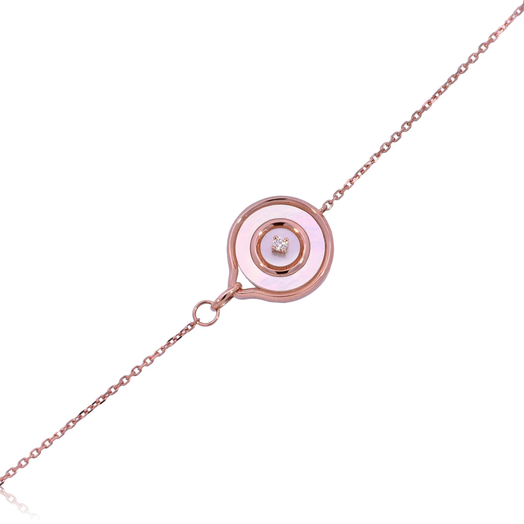 18ct Rose Gold Claw Set Mother of Pearl & Diamond Circle Piccola Bracelet