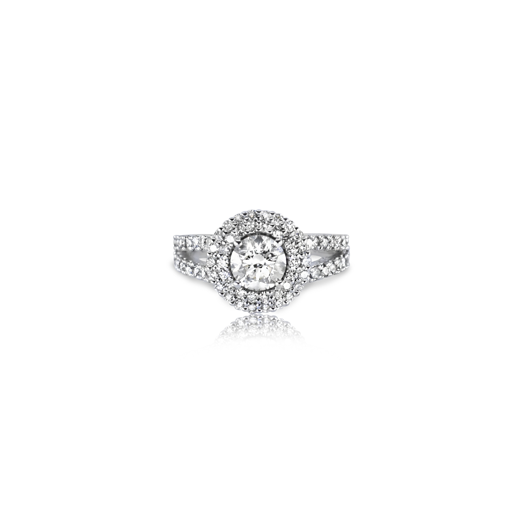 18ct White Gold Claw Set Diamond Double Halo Easy Diamond Ring