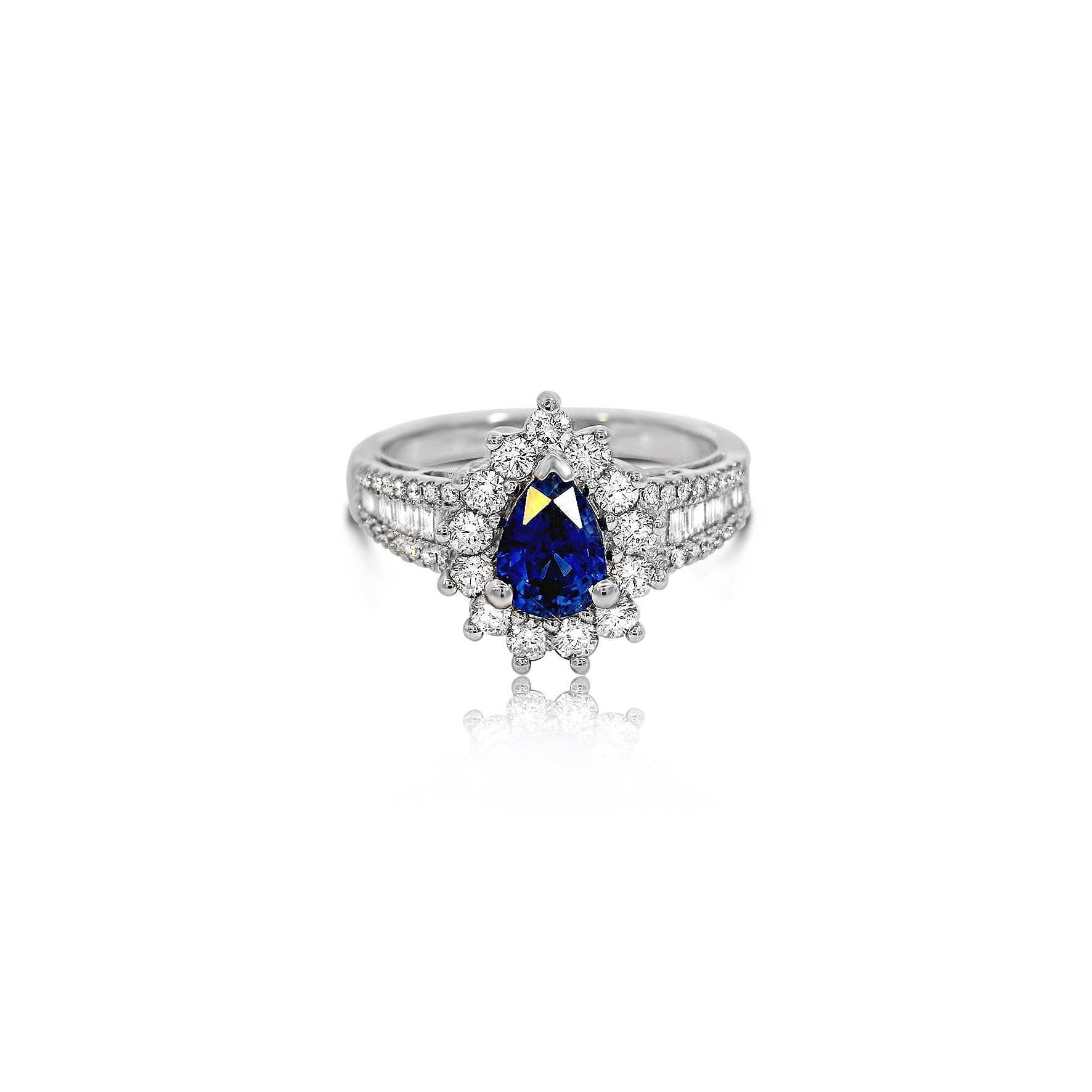 18ct White Gold Claw Set Diamond & Sapphire Cluster Ring