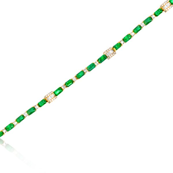 18ct Yellow Gold Claw Set Diamond & Emerald Bayede Bracelet