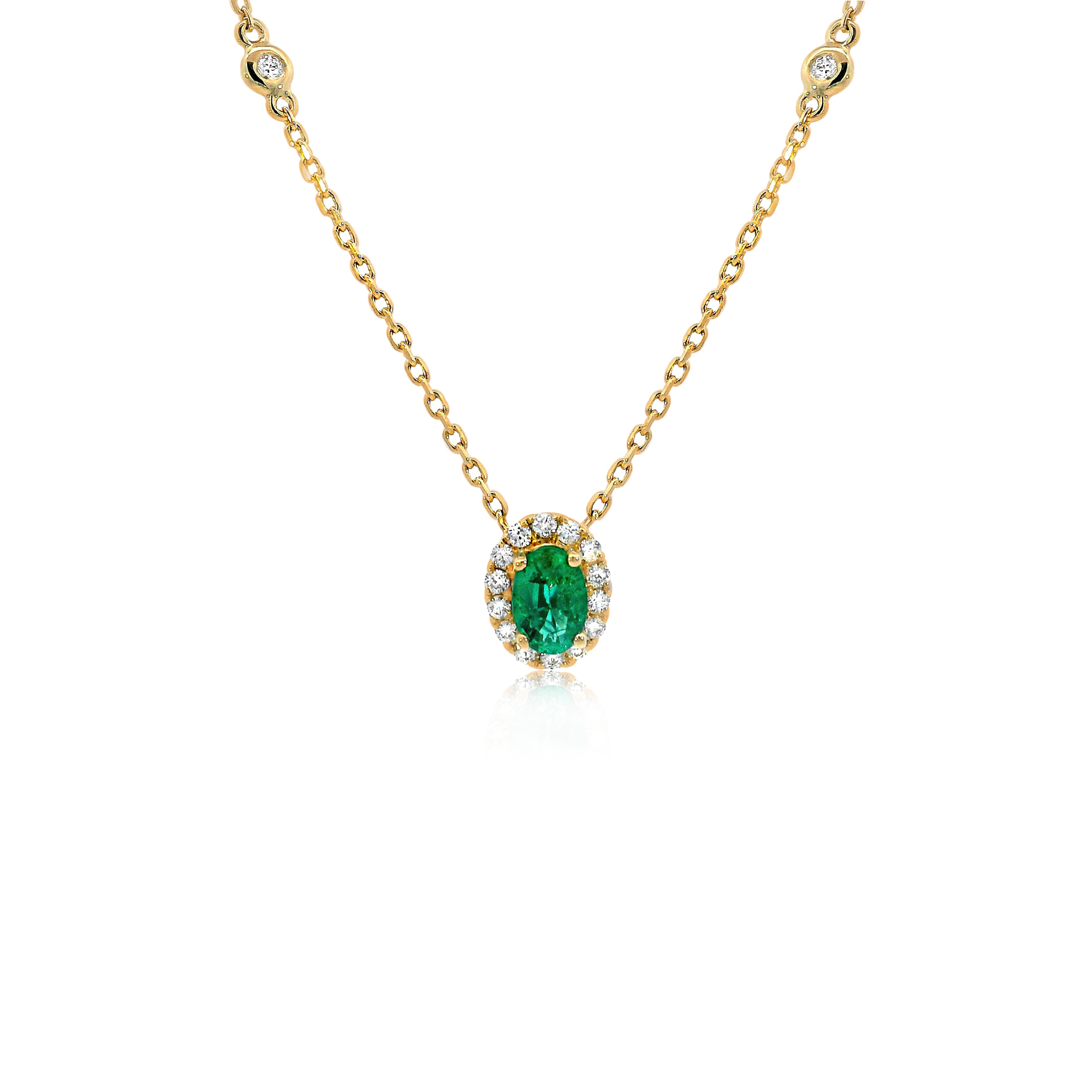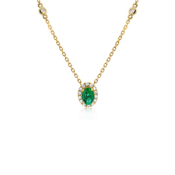 18ct Yellow Gold Claw Set Diamond & Emerald Cluster Bayede Necklace