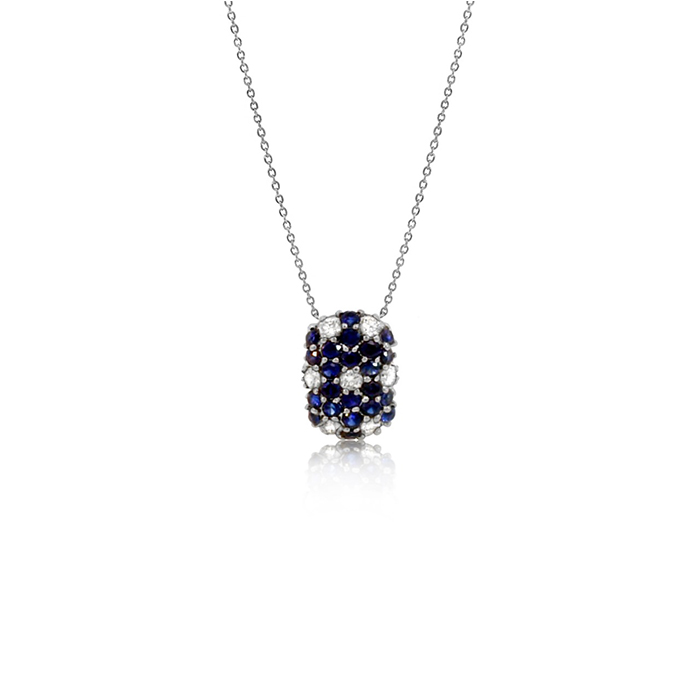 9ct White Gold Claw Set Sapphire & Diamond Oval Bellagio Bayede Necklace