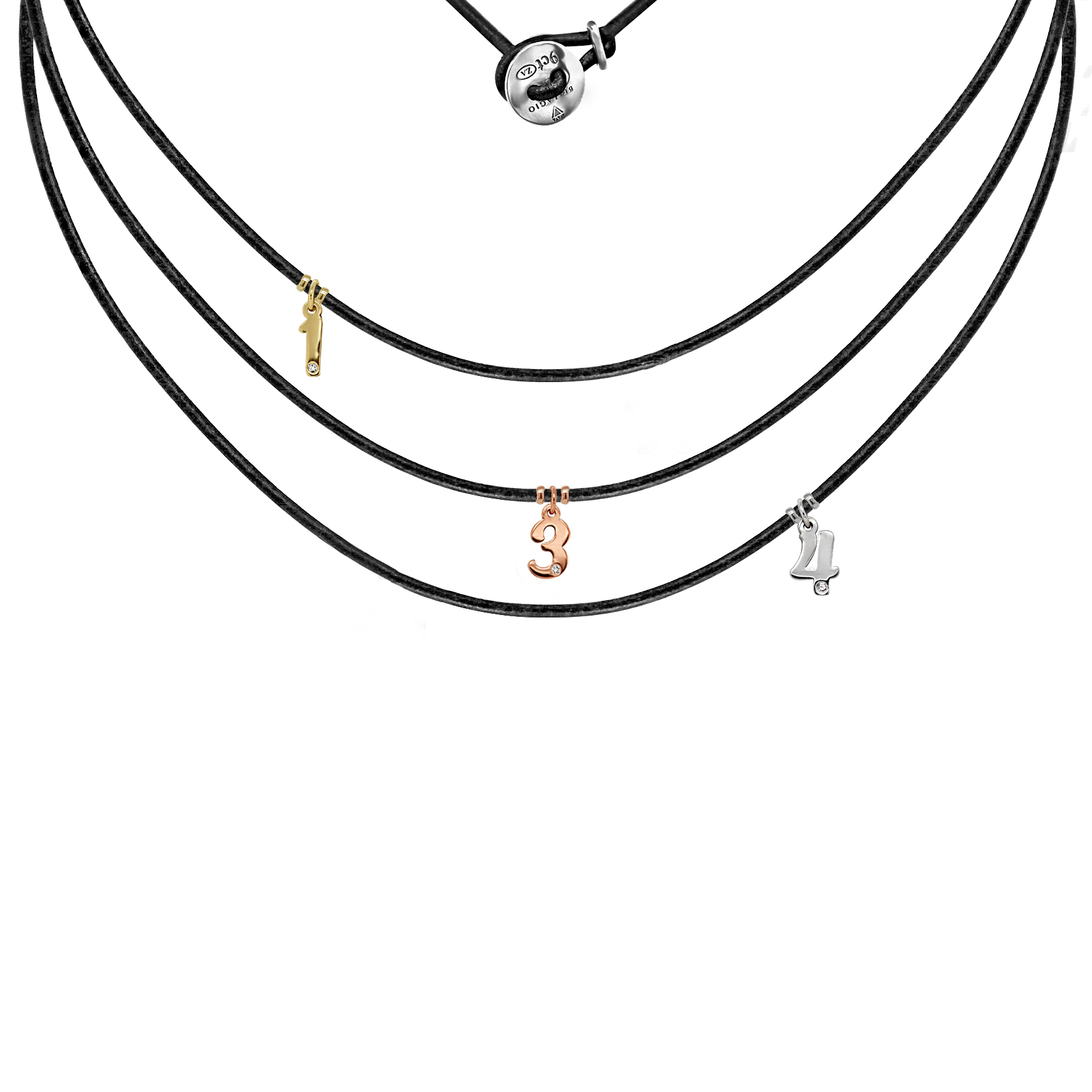 9ct White, Yellow & Rose Gold Diamond Multicharm Black Leather Cord Momenti Necklace
