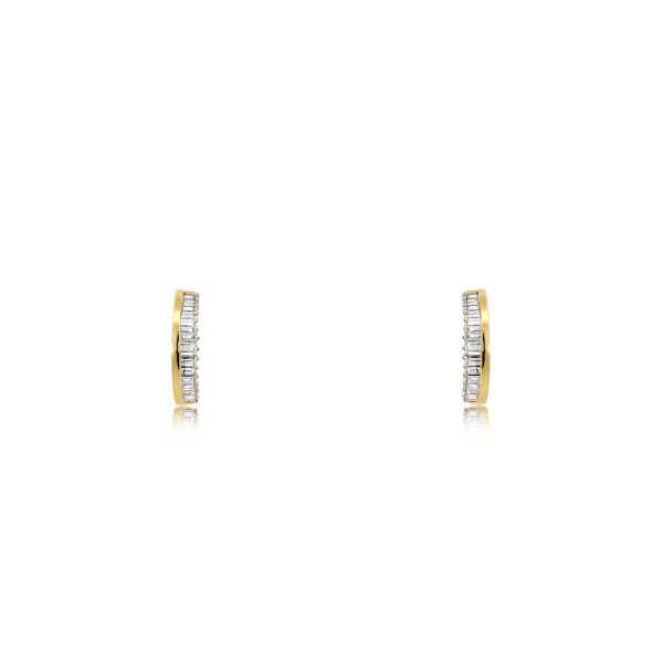 9ct Yellow Gold Claw Set Baguette Diamond Bellagio Piccola Huggie Earrings