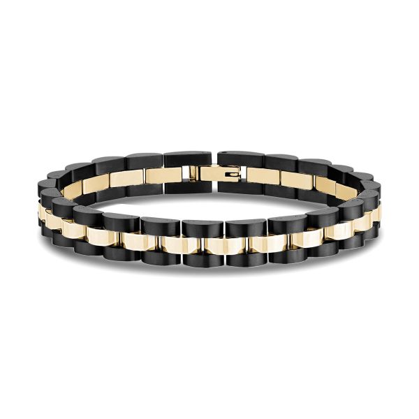 A.R.Z Steel 8mm Gold Black Dome Link Stainless Steel Bracelet
