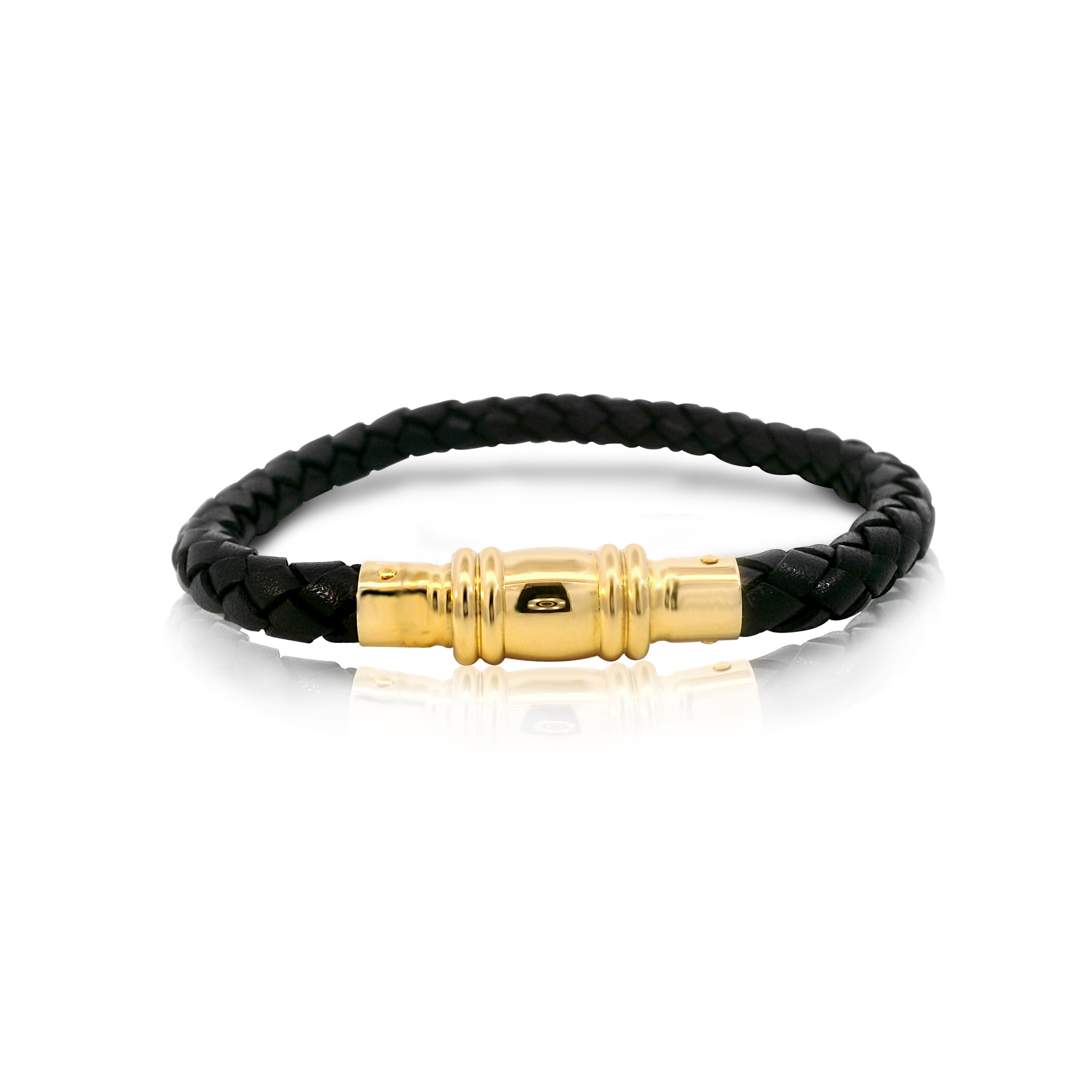 Legend Black Braided Leather with 14ct Yellow Gold Clasp Bracelet