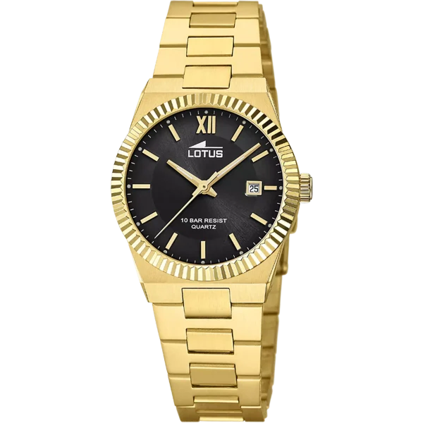 Lotus Freedom Black Dial Gold Stainless Steel Ladies Watch