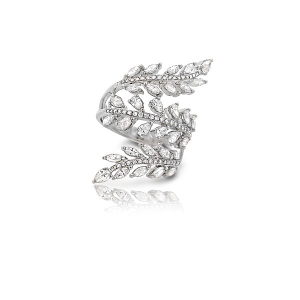 This is Neovine, the evolution of nature in diamond form. Crafted in 18ct white gold, its spiral design coils elegantly around the finger, much like a vine reaching for the light. The piece features 2.07ct of pear cut, marquise cut, and round brilliant diamonds, each one placed to mimic the delicate symmetry of leaves. Every facet catches the light like sunlight breaking through a forest canopy. Neovine is not just inspired by nature, it redefines it, transforming the organic into something futuristic, sculptural, and infinitely captivating.