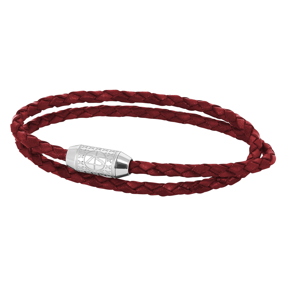 Zeades Cosmopolitan Red Woven Leather & Stainless Steal Bracelet